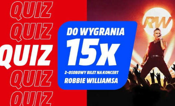 MediaMarkt organizuje quiz, w którym można wygrać bilety na koncert Robbie’go Williamsa w Krakowie. Do wygrania jest 15 podwójnych biletów na występ, który odbędzie się 9 września 2025 roku w TAURON Arena Kraków o godz. 18:00.